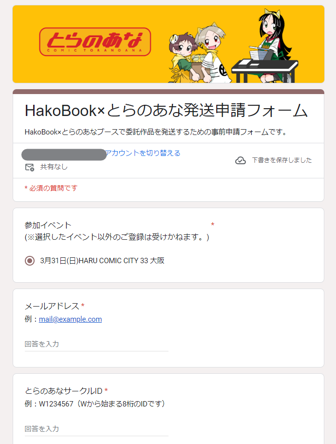 - とらのあな新刊登録(~イベ翌日の午前まで)