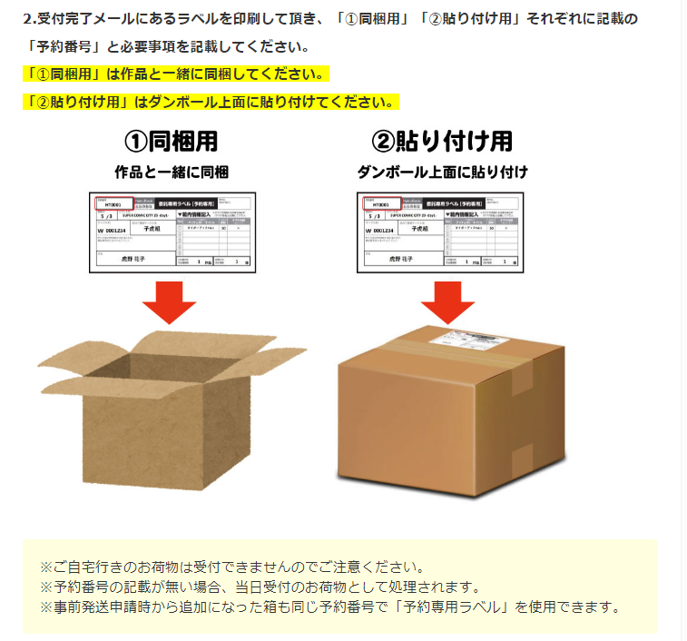 印刷しておいた紙に送付する部数や本の名前を記入します。そして上述のとおり、ダンボールの中に①を同梱して封をし、②貼り付け用をダンボールの上に張り付けます。
