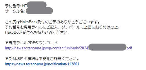 とらのあなのページにあるとおり、受付完了メールに記載のPDFをダウンロードして印刷します。